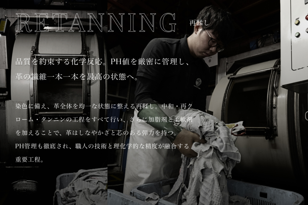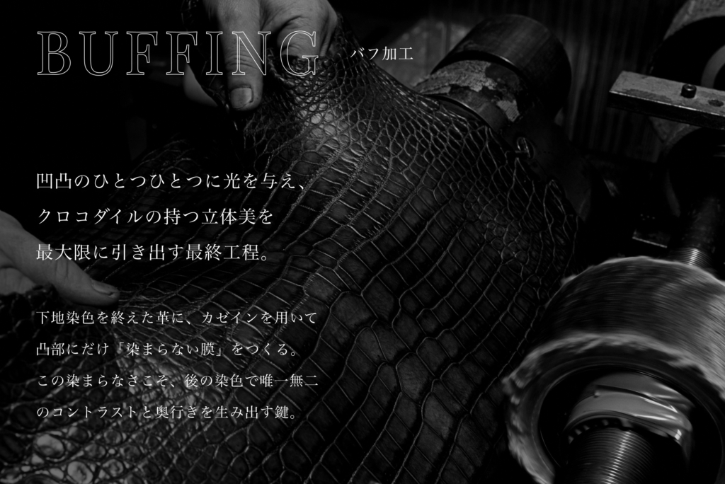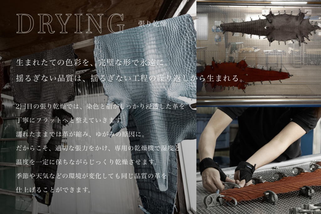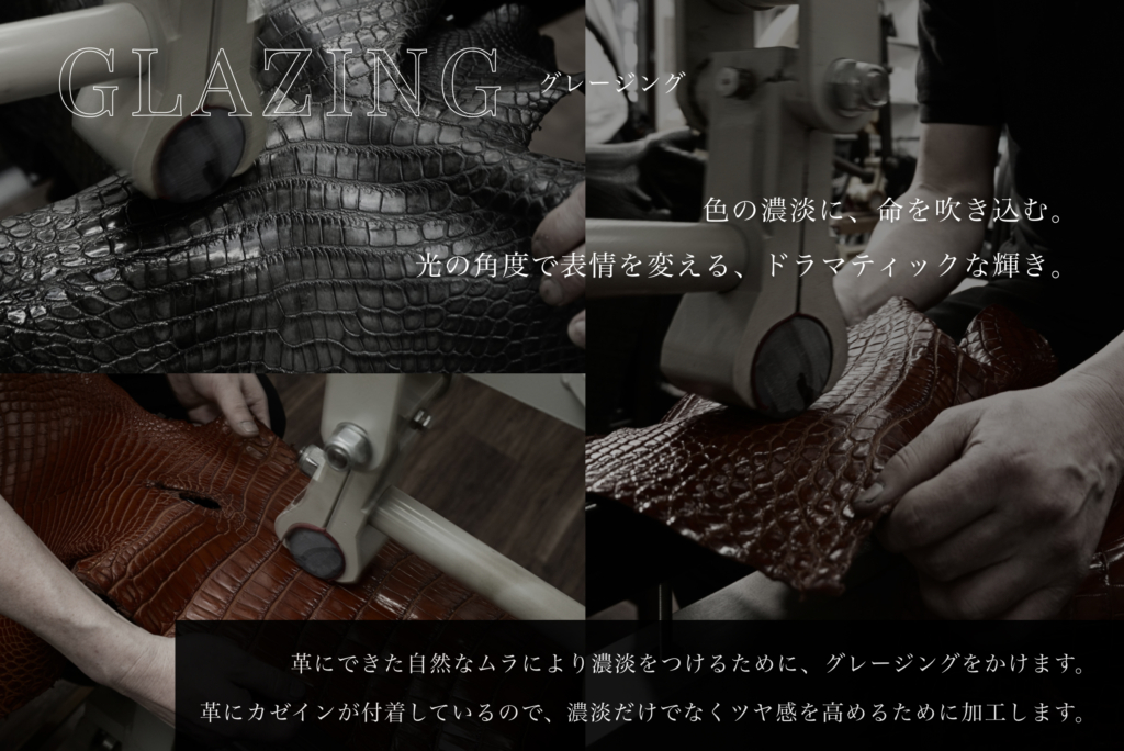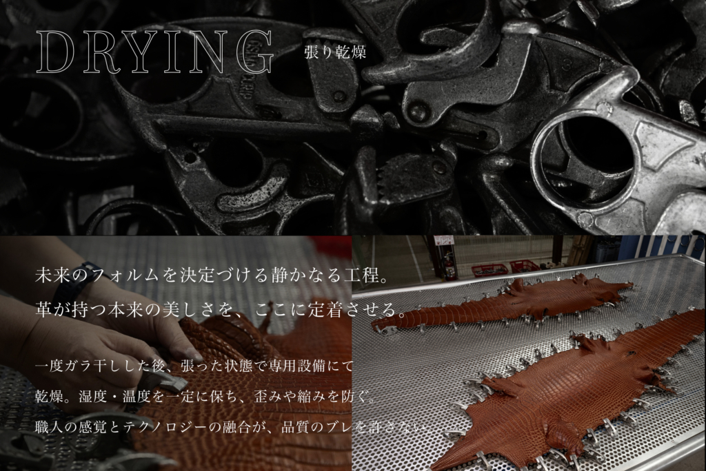 【数々の工程を経て、芸術品と呼ぶべき革が、いま、ここに完成する。】