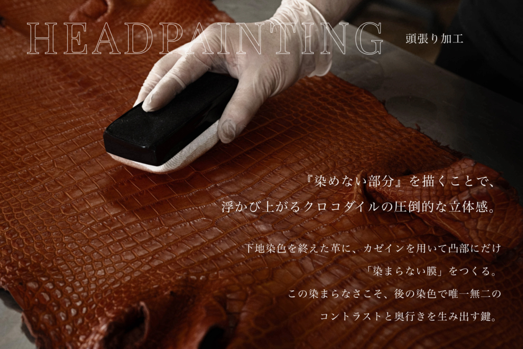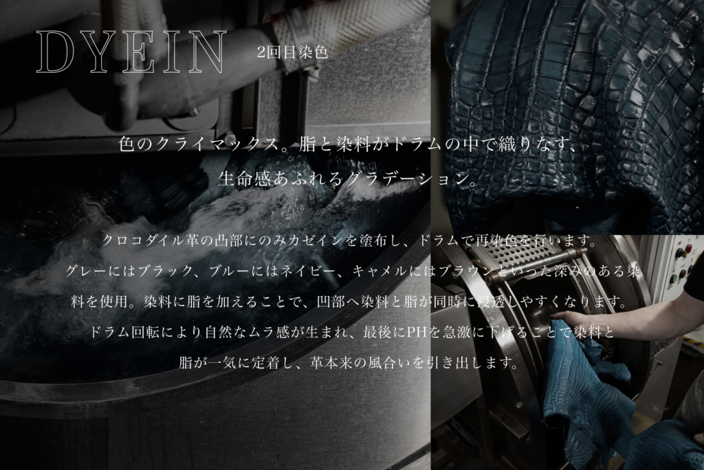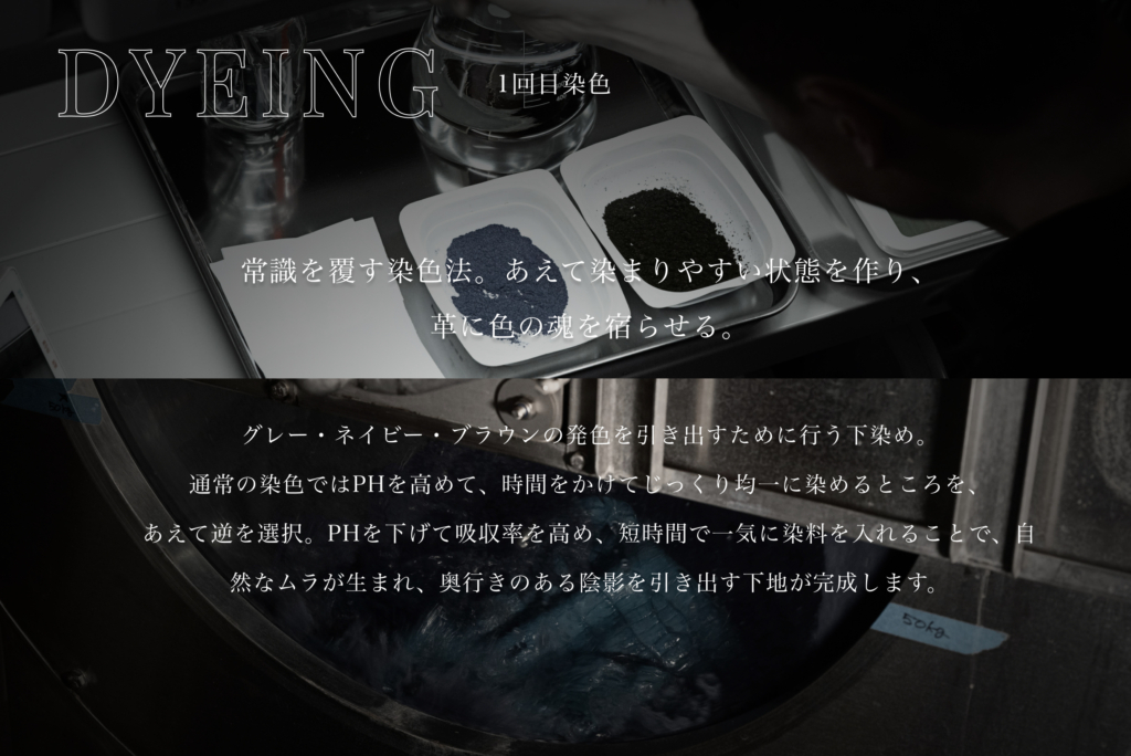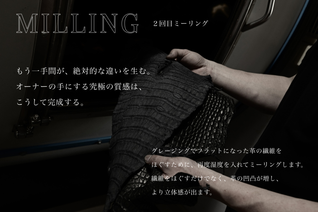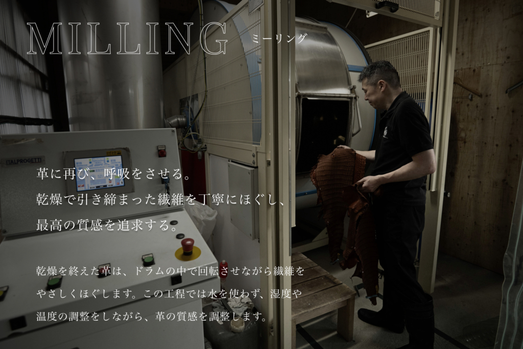 【数々の工程を経て、芸術品と呼ぶべき革が、いま、ここに完成する。】