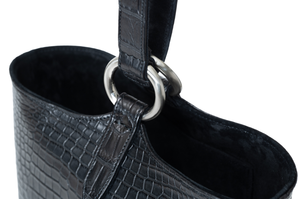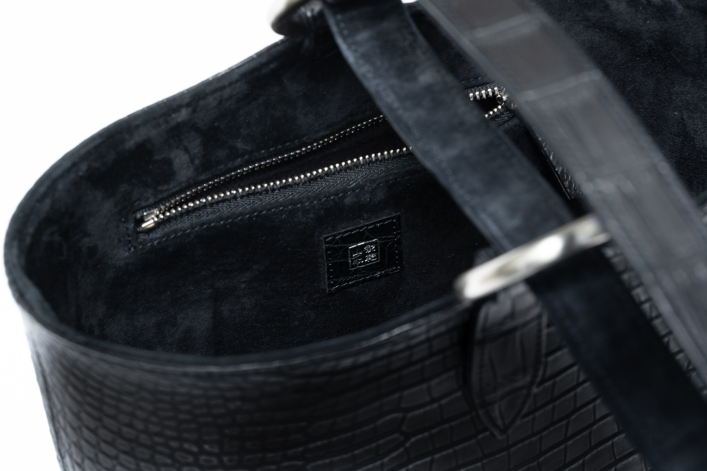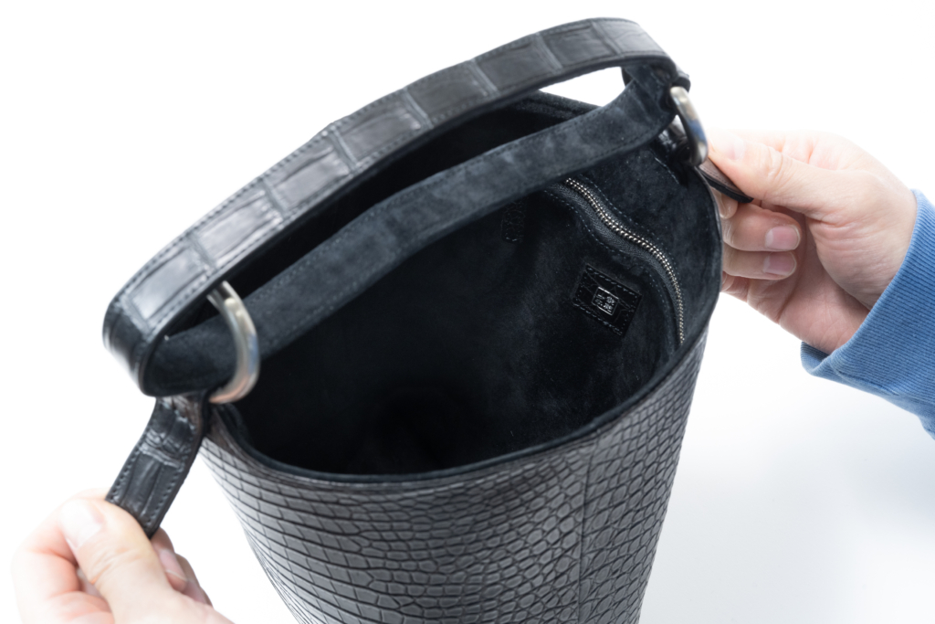 特に本製品には、世界でも評価の高い ポロサスクロコダイル(ナイルクロコ)を厳選して2匹分使用。その美しい腑柄と自然の光沢が、飽きのこない上質感を放ちます。さらに腑の大きさやバランス、左右対称性など、見た目の調和にも徹底的にこだわることで、バッグ全体としての統一感と存在感がより高められています。ポロサス特有のしなやかさや深い質感は、手に取った瞬間にその違いを実感していただけるでしょう。
